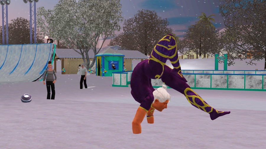 Sentään pääs sisätiloihin eikä tarvinnu enää yrittää temppuilla lumihangessa.