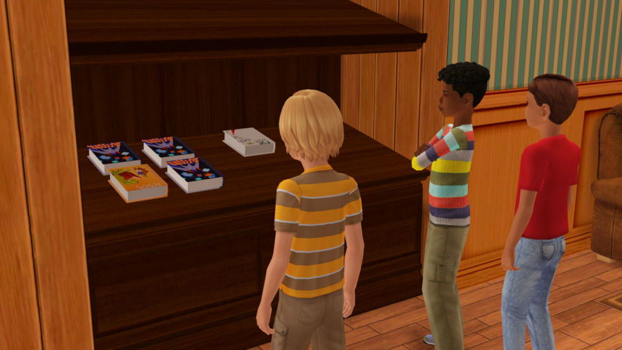 Hankinnan takana mulla oli idea, että haluan simien kirjottamat kirjat myyntiin. Muuten ainoastaan kirjottajan talous saa kirjasta yhen kopion, joka saattaa helposti vahingossa hävitä kirjahyllyn mukana. Löysin modin joka mahollistaa kirjojen myymisen yrityksessä, joten ainut mitä mun piti enää tehä oli monistaa Melisan kirjat, jotta perheelle jäis myös yhet kopiot. Pelissä on onneksi olemassa helppo bugi, jota siihen voi hyödyntää.