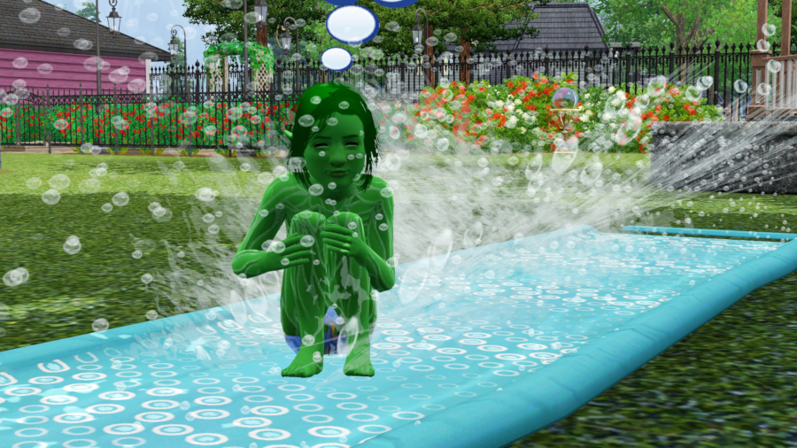 Uusine omannäkösine hiuksineen se hyökkäs totta kai saman tien vesiliukumaton kimppuun. Sillähän oli eläessään raivostuttava tapa leikkiä sadettimella 24/7.